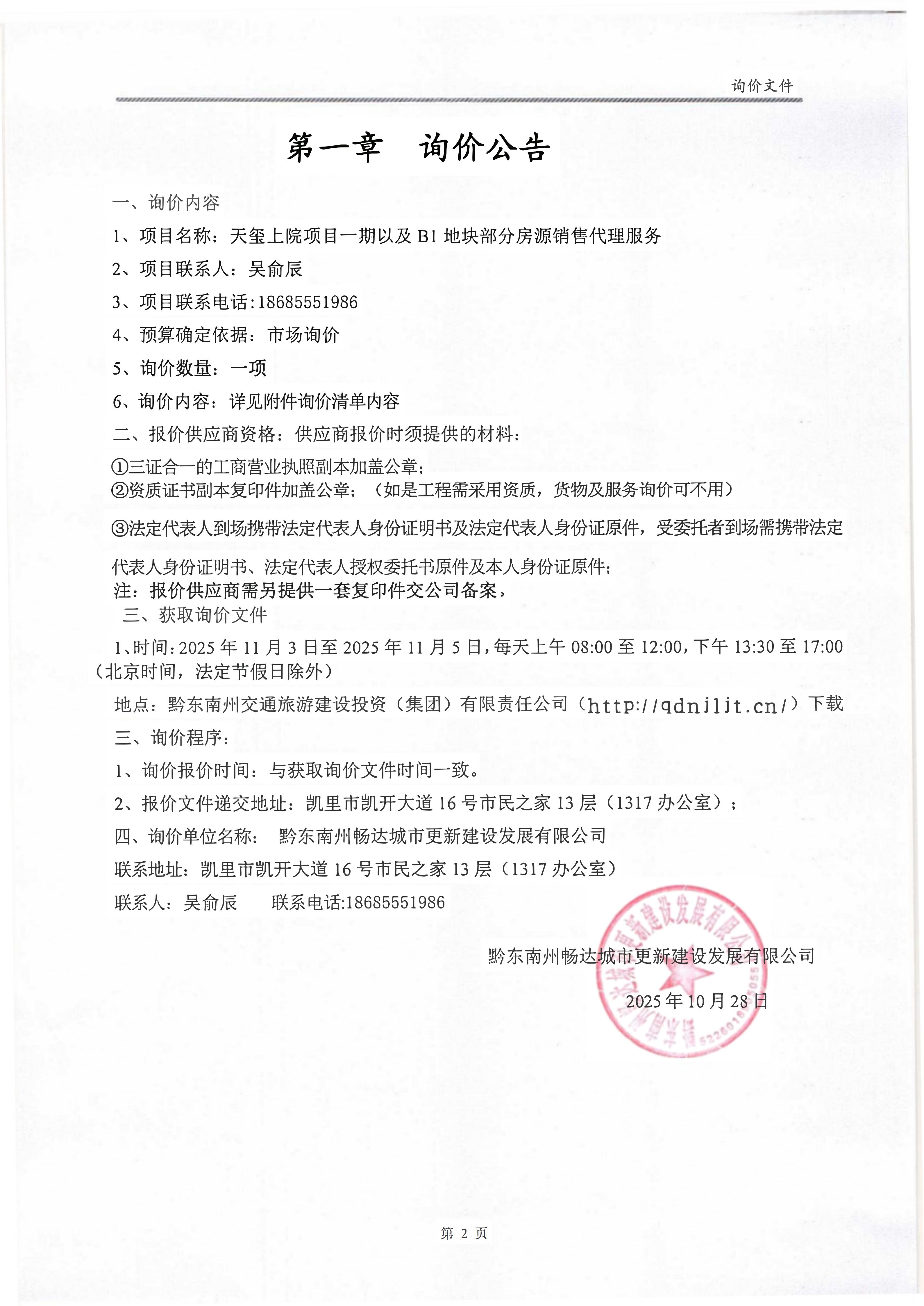 天玺上院项目一期以及B1地块部分房源销售代理服务市场询价公告