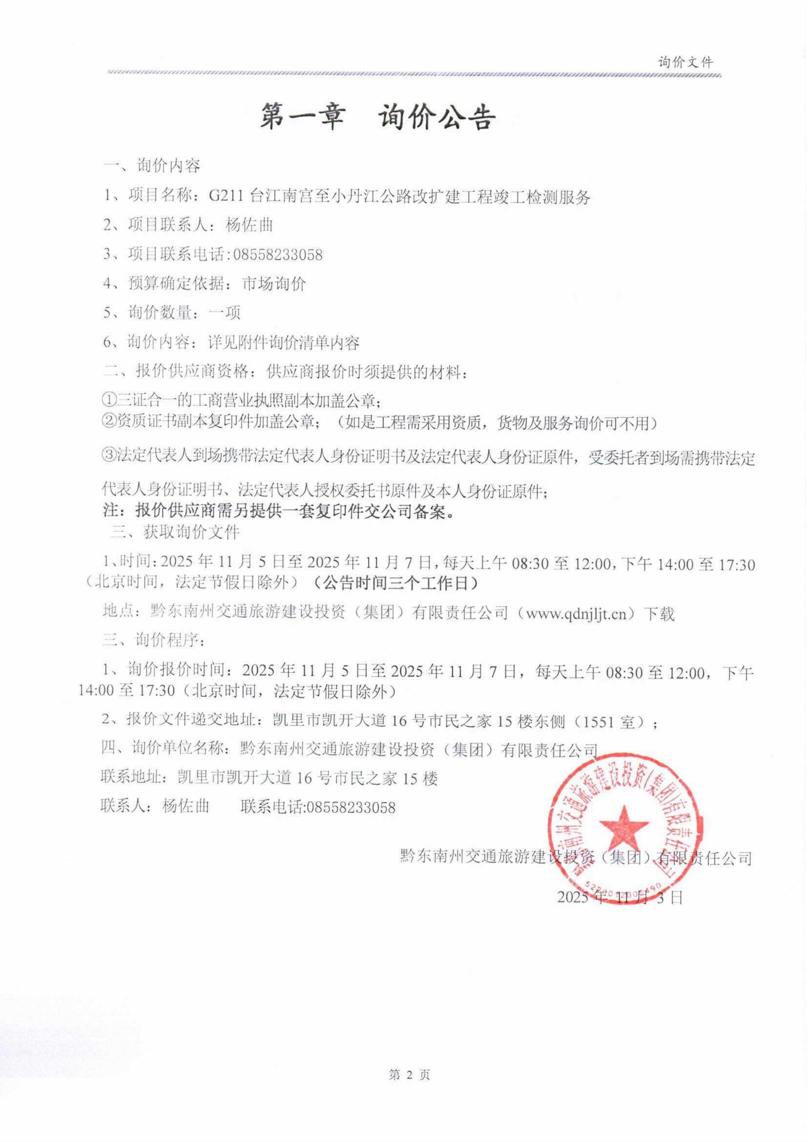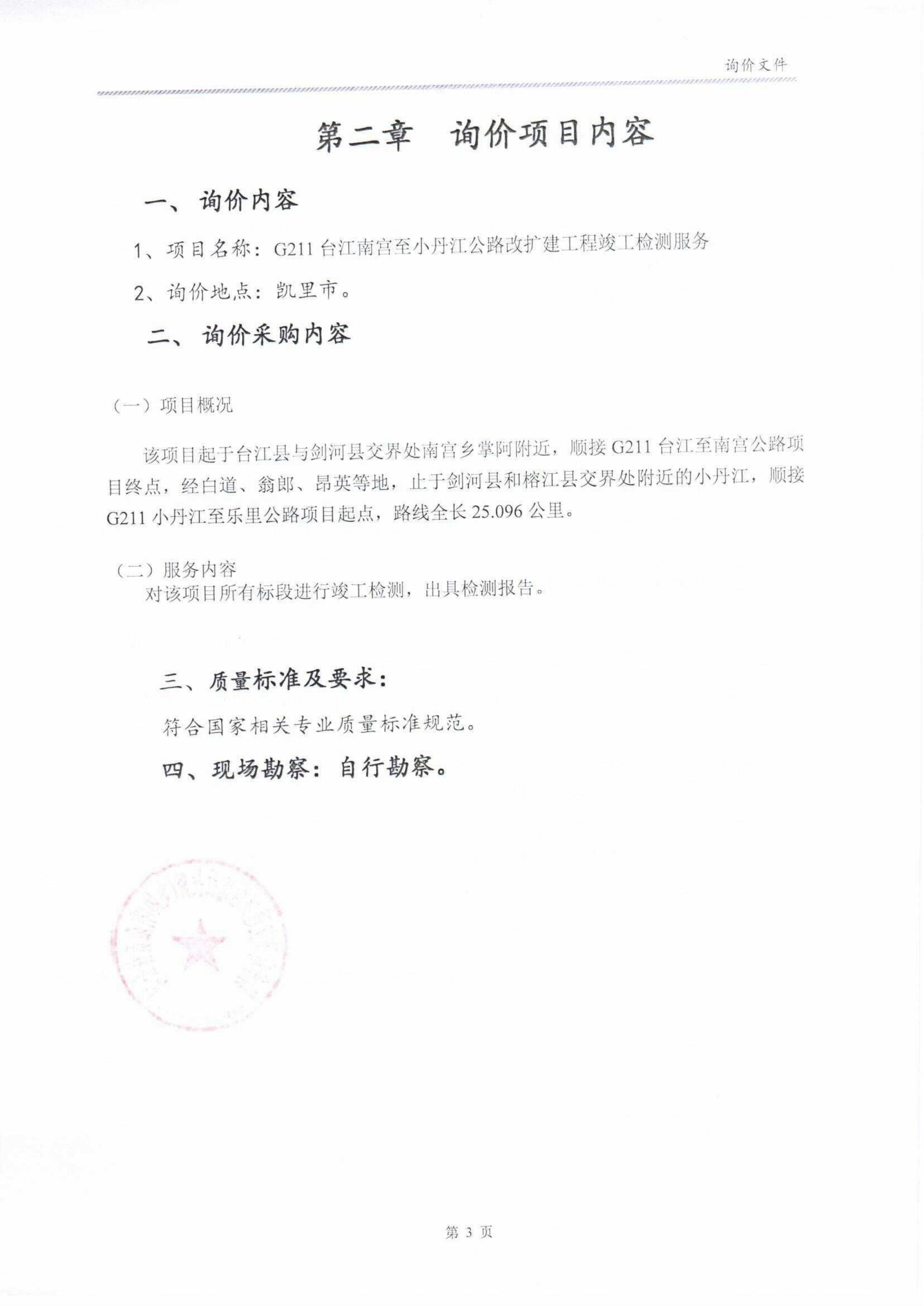 G211台江南宫至小丹江公路改扩建工程竣工检测服务市场询价公告