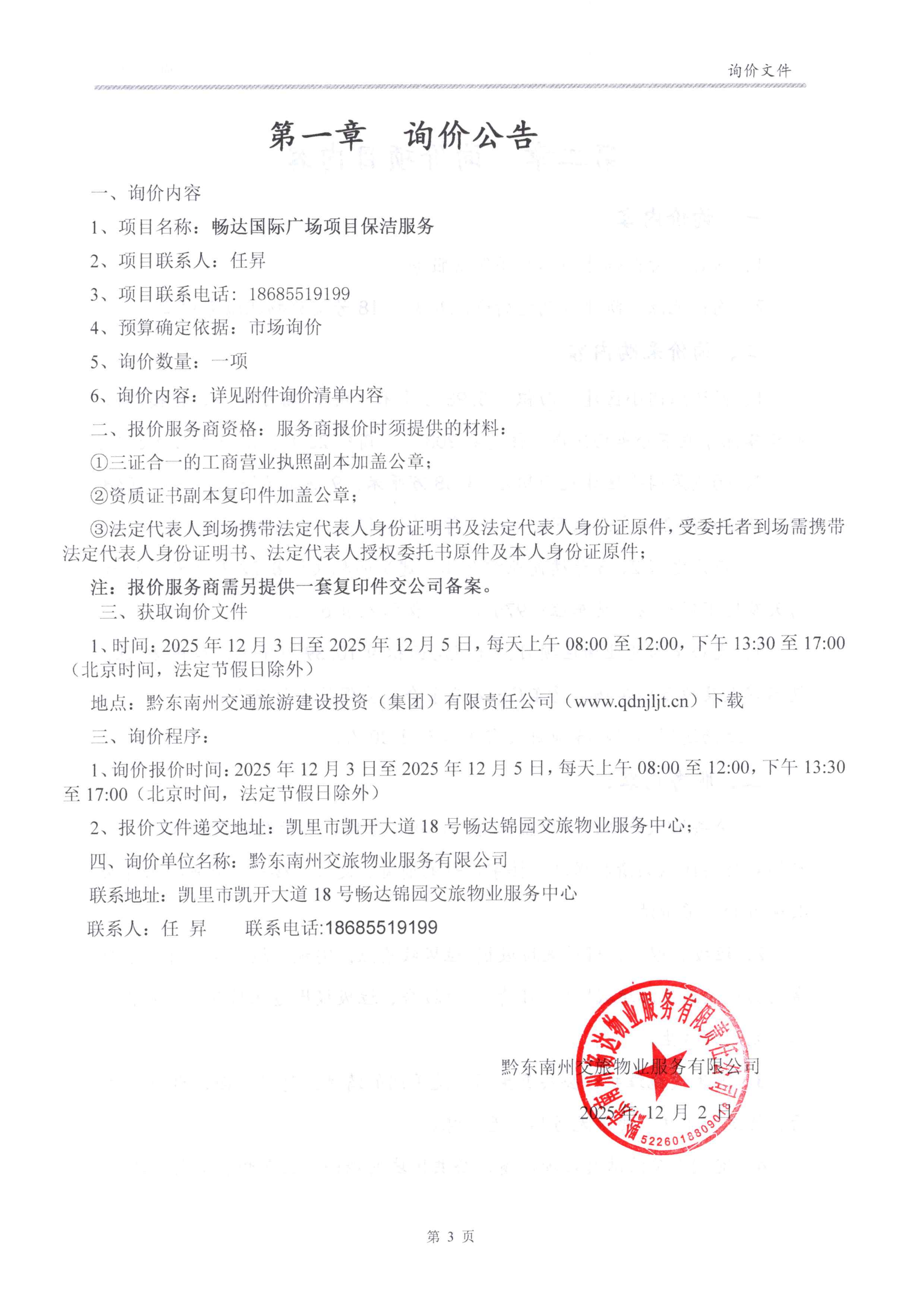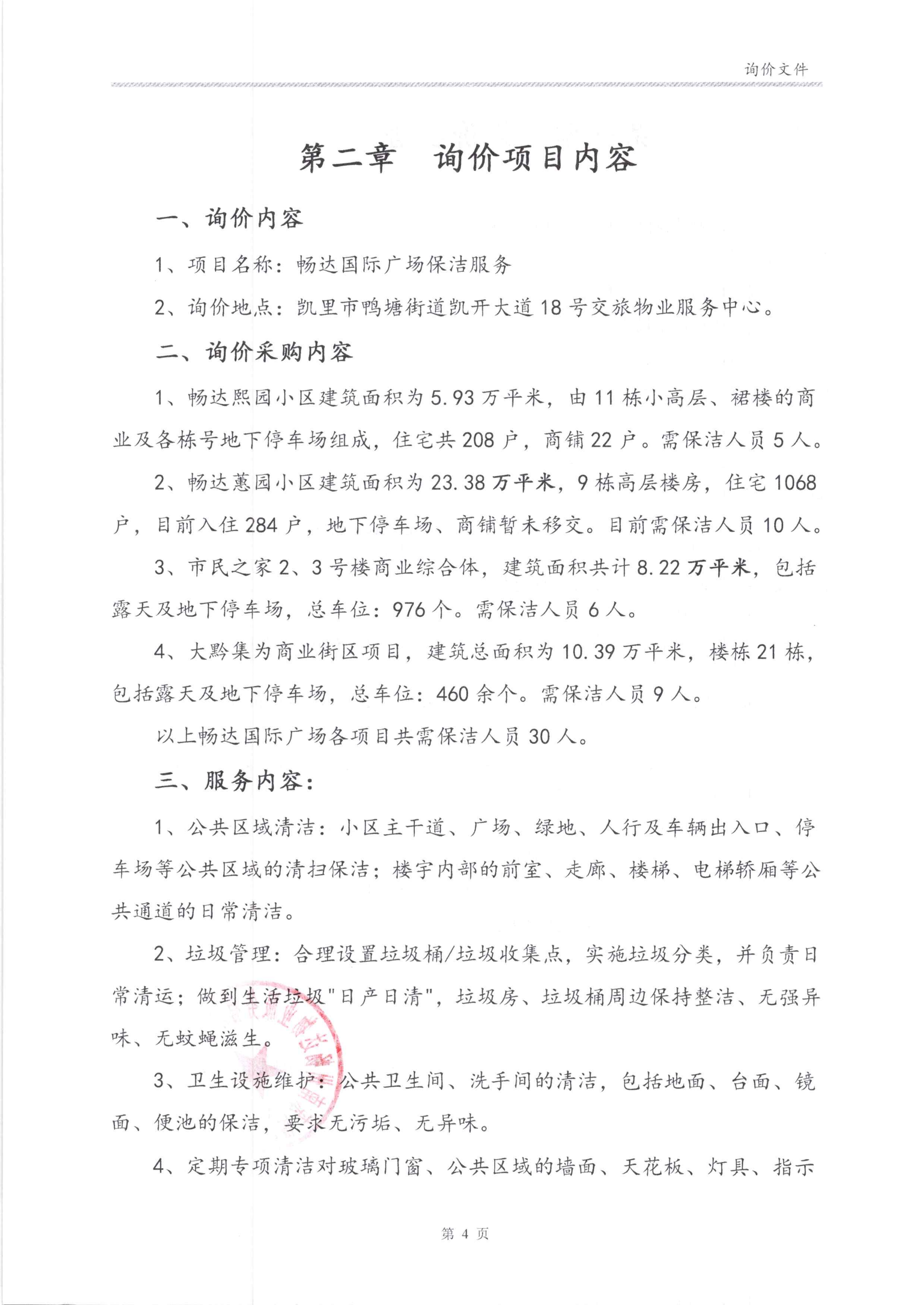 畅达广场保洁服务采购项目市场询价公告