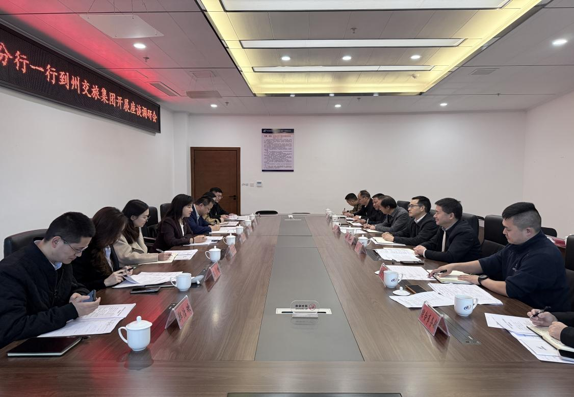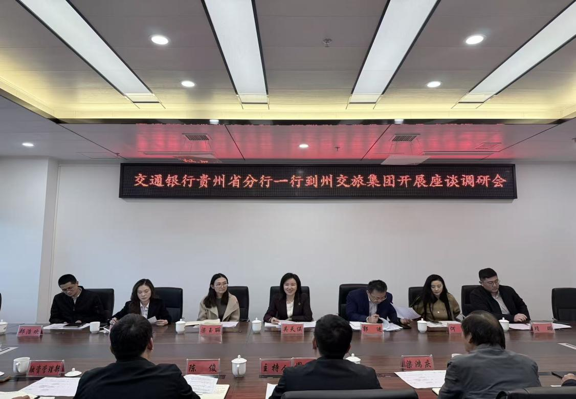 为深化银企战略合作,助力地方国企高质量发展,2025年11月11日下午,交通银行贵州省分行党委委员、副行长吴天俣带队赴州交旅集团开展座谈调研。州国资委党委书记、主任周国好到会指导,州交旅集团党委书记、董事长陈俊作工作汇报。