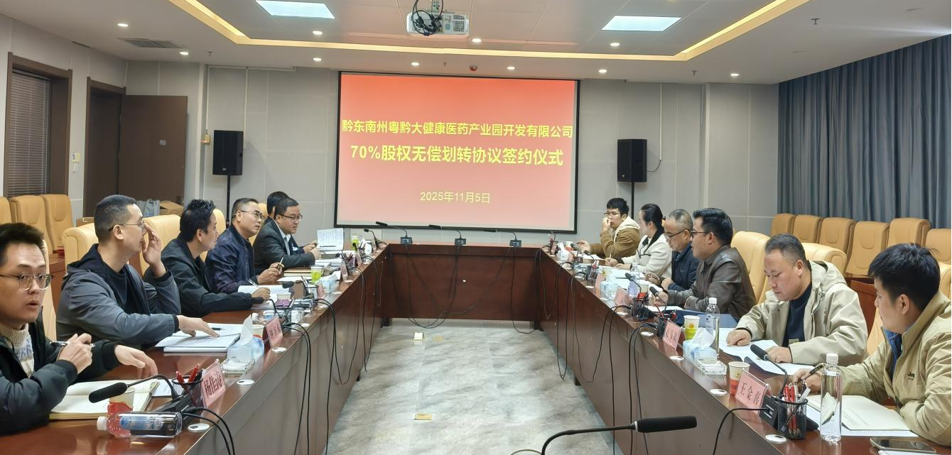 2025年11月5日,黔东南州交旅城市投资开发有限公司(简称“州交旅城投公司”)与贵州洛贯产业投资发展(集团)有限责任公司(简称“洛贯产投集团”)在从江县签署股权无偿划转协议,代表着黔东南州粤黔大健康医药产业园(B区)一期项目股权划转工作已正式完结。